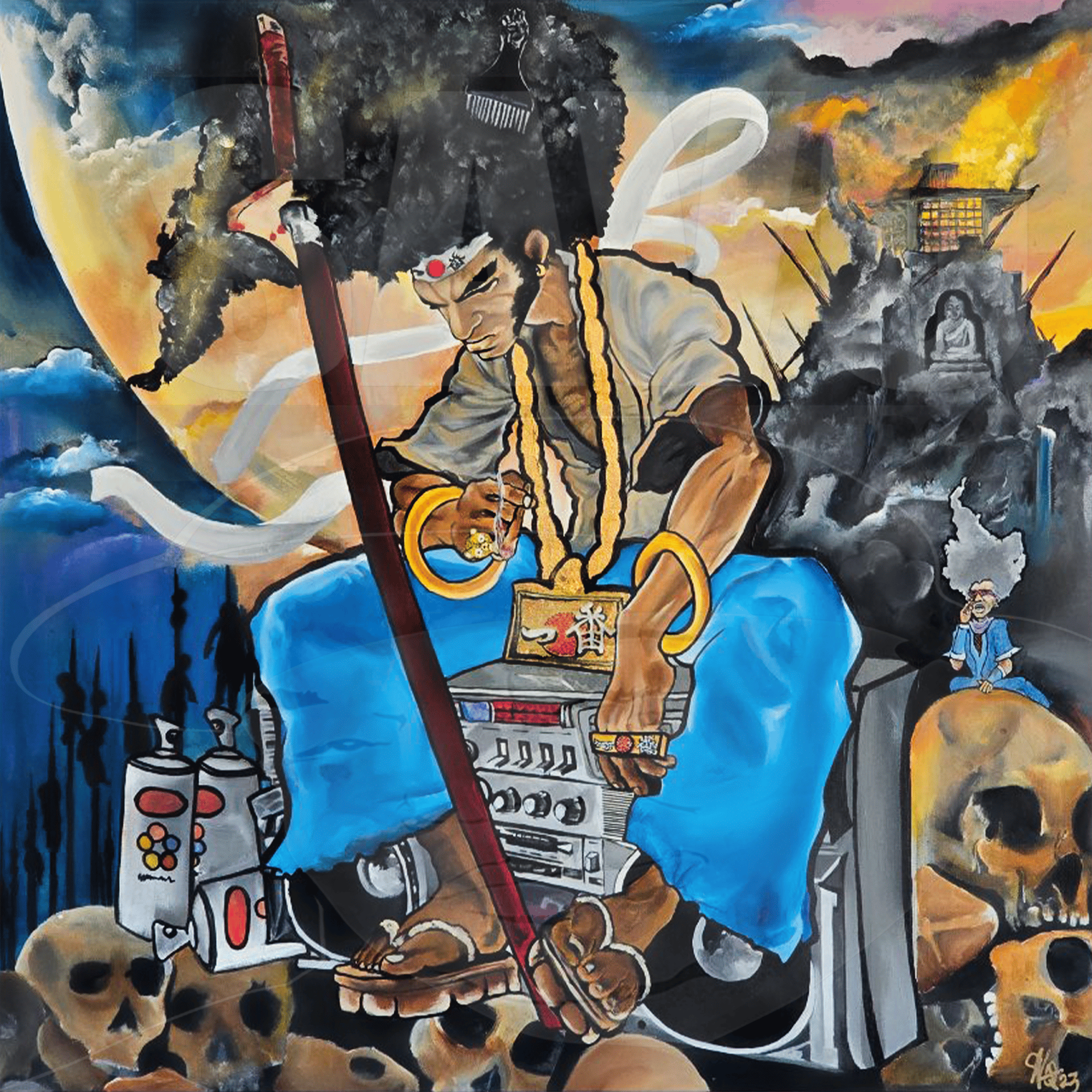 "AFRO SAMURAI" 36"x36" • ORIGINAL PAINTING By: SAVO888